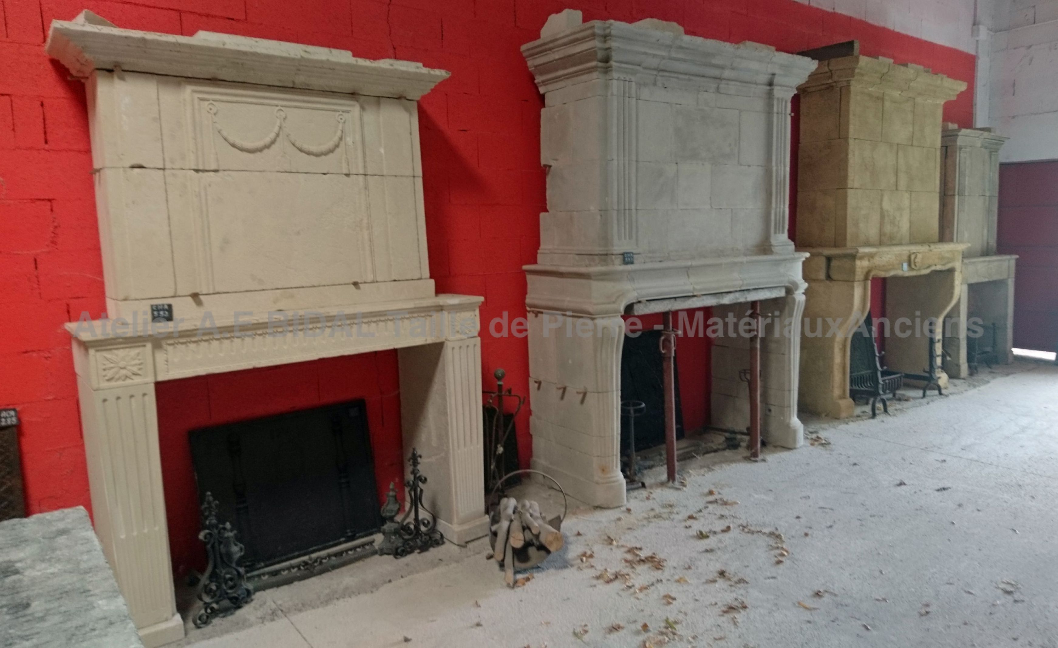Alain Bidal and his antique materials company "Les Mémoires d'Adrien" offer you a wide range of magnificent ancient fireplaces presented in our Provençal showrooms. A large range of authentic antique fireplaces in stone (Gothic, Renaissance, Louis XIII, Louis XIV, French Regency, Louis XV, Louis XVI, Directory, Restoration and Napoleon III).