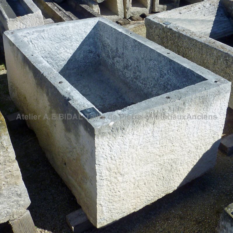 Antique limestone trough with a hammered and brushed finish.